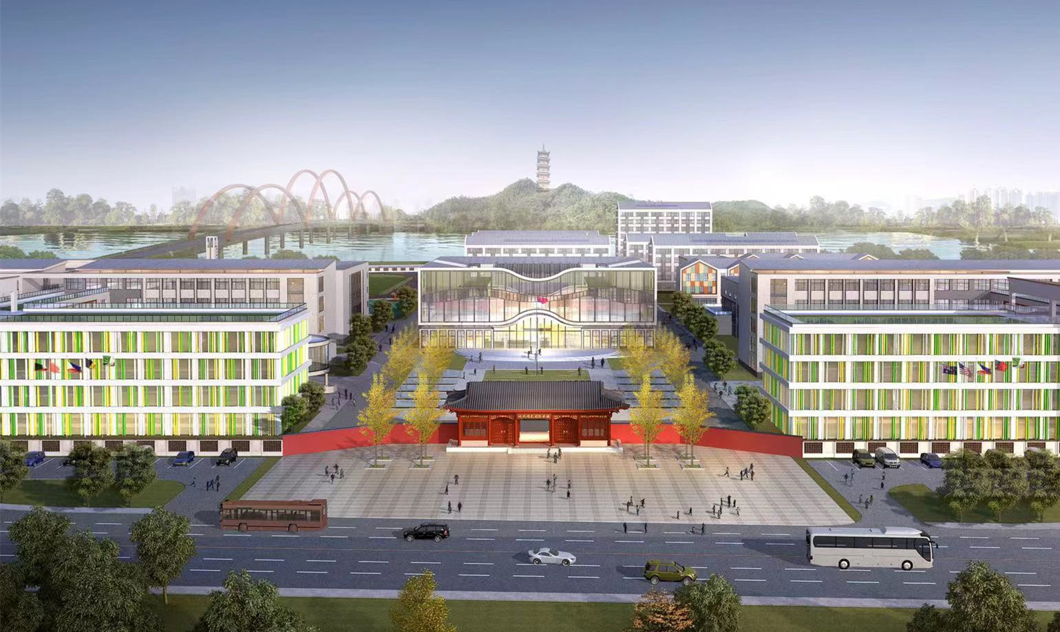 “北大青鳥同文附屬當(dāng)涂學(xué)?!睘榘變簣@、小學(xué)、初中、高中的一貫制國際化學(xué)校。本案充分利用“場、院、園”等中式建筑規(guī)劃的元素,將各種功能空間進(jìn)行有機(jī)的組合,形成不同形式的院落空間。體現(xiàn)了古典與現(xiàn)代結(jié)合、莊嚴(yán)與優(yōu)雅并存的特點(diǎn)。力圖打造一所呈現(xiàn)當(dāng)涂文化特色,傳承北大精神,體現(xiàn)真實(shí)平等、開放包容、陽光健康、綠色生態(tài)的現(xiàn)代辦學(xué)理念引領(lǐng)的新式國際化校園。