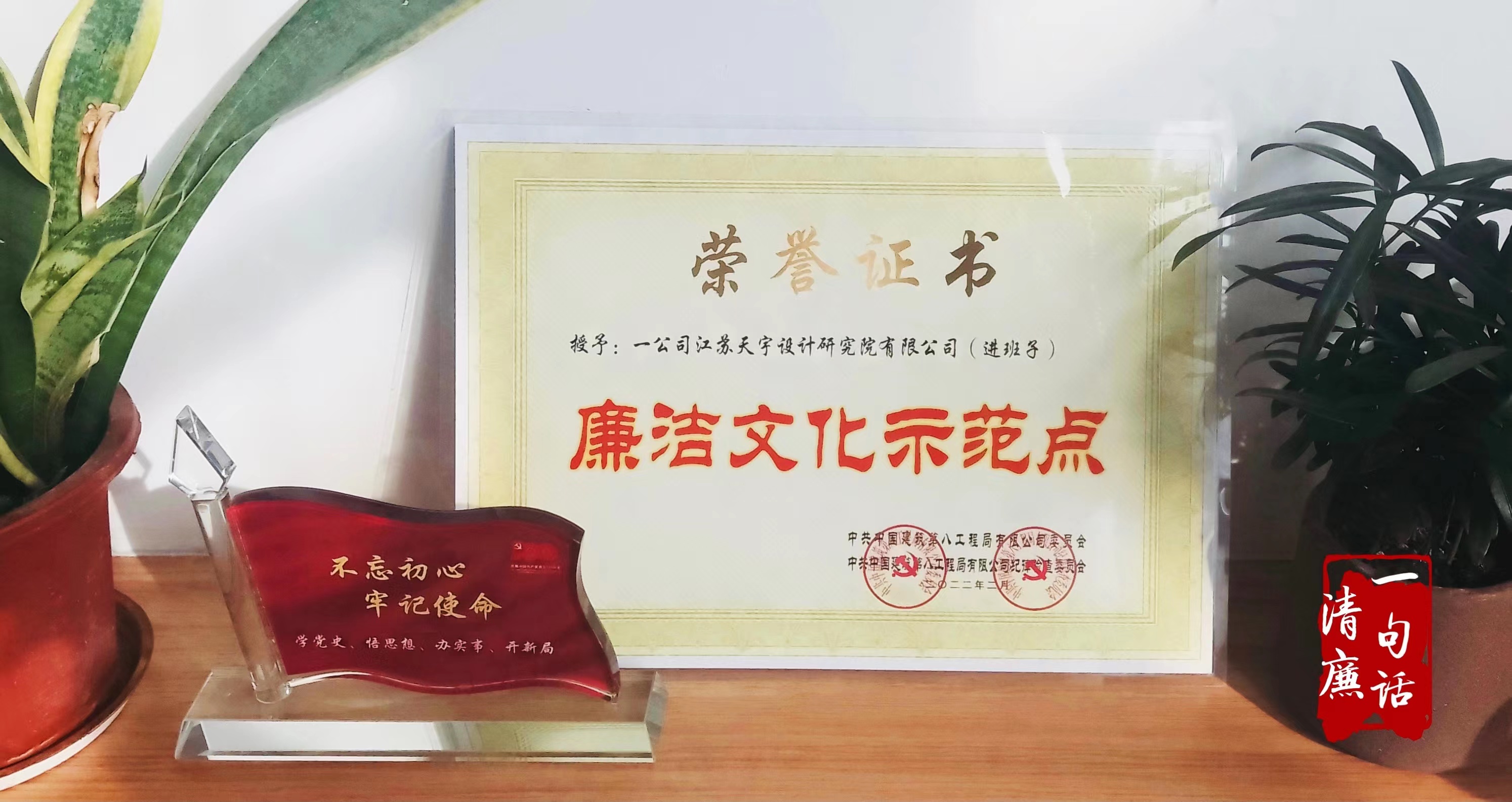 3月1日,中建八局黨委工作部公布《關(guān)于表彰2021年度廉潔文化建設(shè)示范單位和廉潔文化示范點的決定》,江蘇天宇設(shè)計研究院榜上有名,獲評2021年度“廉潔文化示范點”。