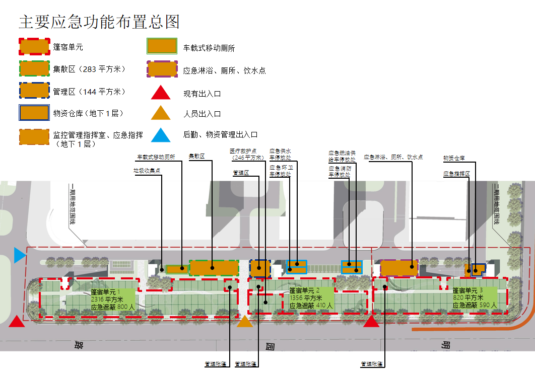 應急支援保障:結合地下應急避難場所進行探索創(chuàng)新,將原本臨戰(zhàn)前需要安裝的設備設施,在平時即設置到位,保障災后應急避難功能的同時,大大縮短了平戰(zhàn)轉換時間。