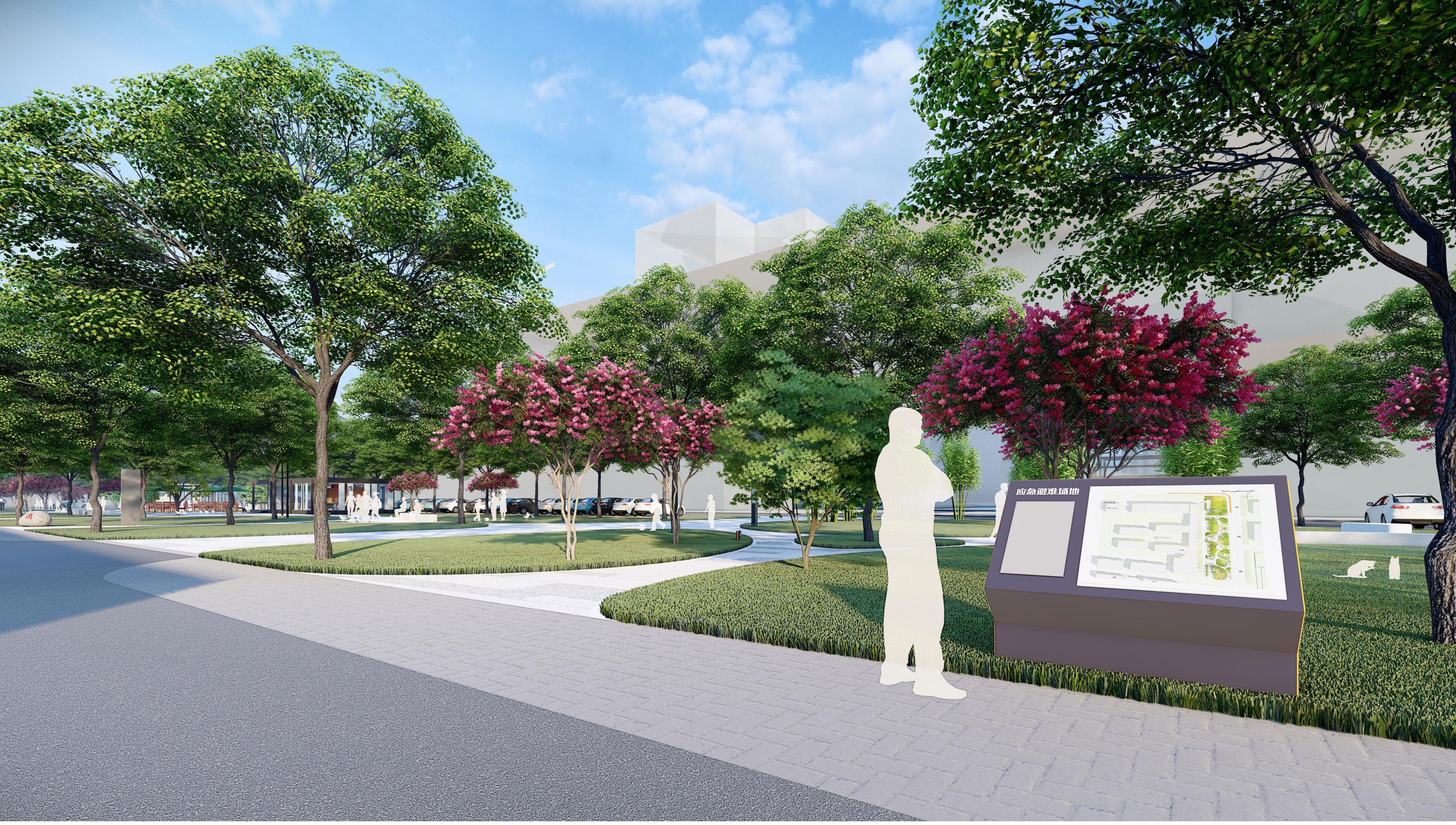 創(chuàng)意園地面為城市街心綠化,景觀面積約1.3萬平方米,設有約30輛充電樁停車位,同時兼顧人防宣傳及地面應急避難場所功能,對培養(yǎng)群眾防空意識和國防觀念有著重要的意義。