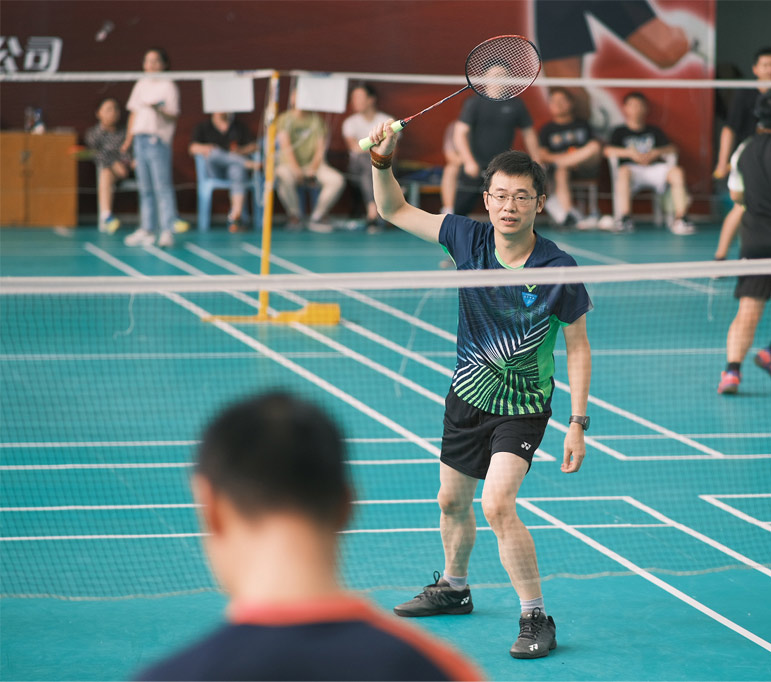 “天宇杯羽毛球賽”為我院舉辦的第三屆羽毛球類賽事,此次比賽共設(shè)男子雙打、混合雙打等類別。比賽中,每個隊員精神飽滿,奮力拼搏。其中本次活動特有的“領(lǐng)導(dǎo)班子+員工”雙打組合在場上尤為搶眼,扣殺、輕吊、上網(wǎng)跟進撲扣,你來我往中體現(xiàn)了配合的默契,更展現(xiàn)了公司員工上下一心,奮勇爭先、努力拼搏的精神風(fēng)貌。