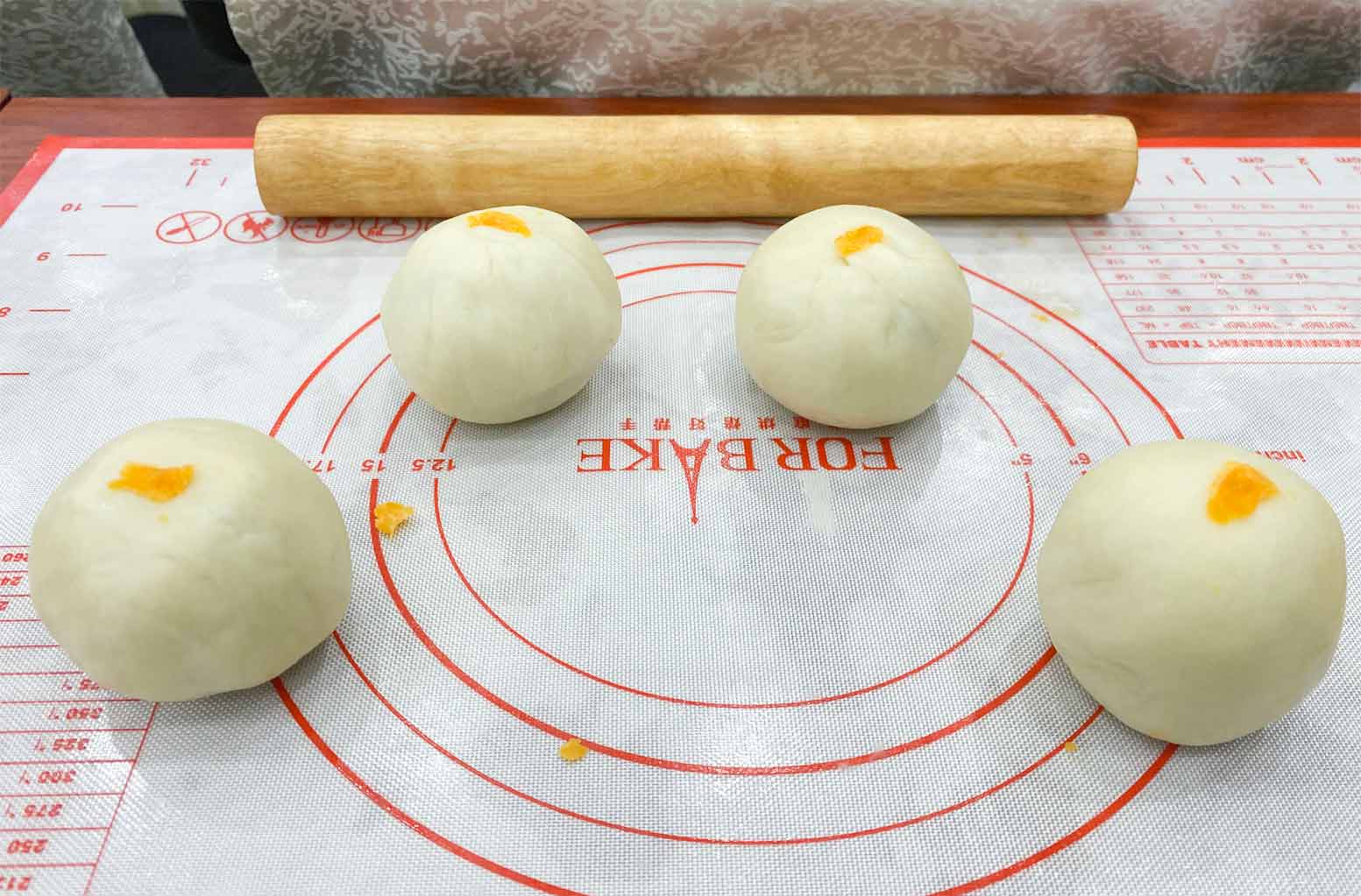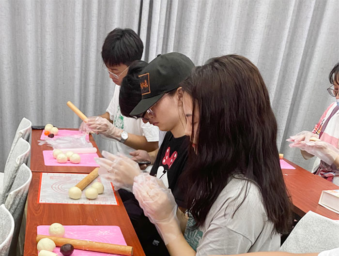 活動(dòng)現(xiàn)場(chǎng),工作人員為大家精心準(zhǔn)備了原材料。在糕點(diǎn)師圖文并茂的講解和言傳身教下,大家紛紛迫不及待地操作起來(lái)?!澳愕拿鎴F(tuán)大了,我來(lái)幫你調(diào)整”,“刷油的時(shí)候控制力度”,大家相互協(xié)助,不斷完善,在歡聲笑語(yǔ)中,一個(gè)個(gè)形式多樣、造型可愛(ài)的蛋黃酥相繼成型。