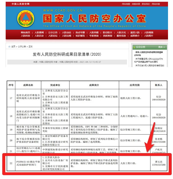 近日,中國人民防空網(wǎng)發(fā)布人民防空科研成果目錄清單(2020),我院與江蘇省人防辦、宜興市人防設(shè)備廠有限公司協(xié)同研制的PYSFM(5)(6)推拉平移式雙扇防護(hù)密閉門順利通過鑒定。